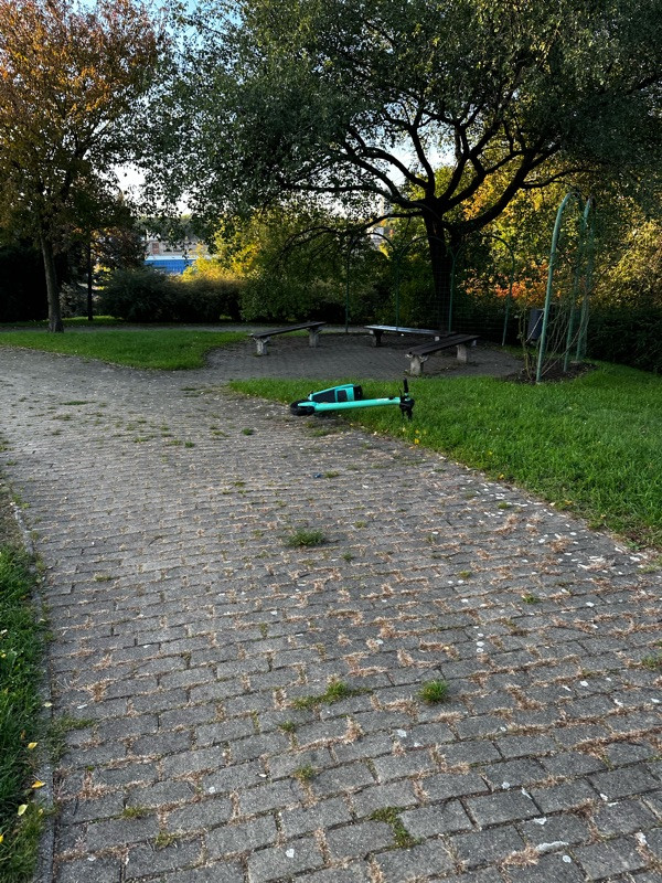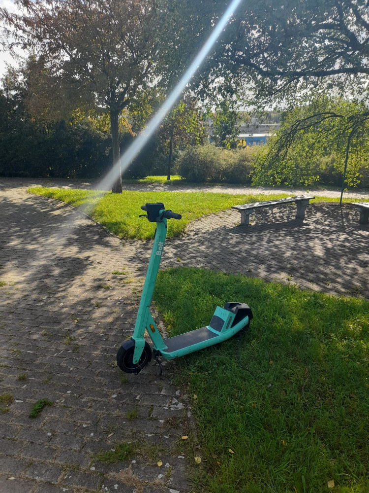 Nicméně z koloběžky někdo vymontoval baterii, takže je nepoužitelná a tím pádem ji asi ani nenalezne provozovatel, aby si ji odvezl. Máte na něj nějakou páku, aby si ji odvezl? Myslel jsme že v parku není možno tato zařízení parkovat....