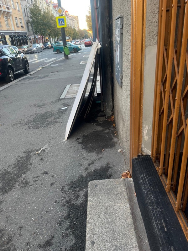 Dobry den. Pred Vinohradskou 101 jsou uz 3. den nějaké desky, asi je tam někdo zapomněl. 1. den byly normální a teď už jsou poničené od deště.
