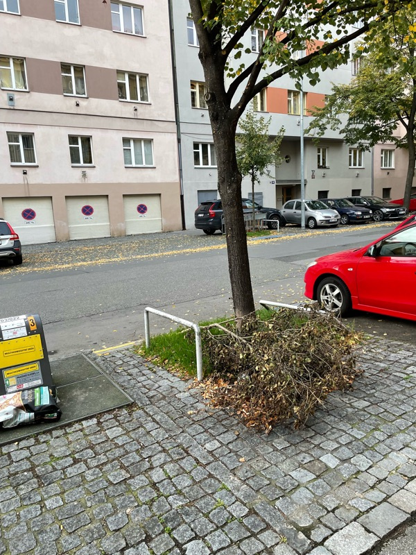 Už delší dobu se na rohu Lucemburské a Baranovy povaluje ulomená větev.
