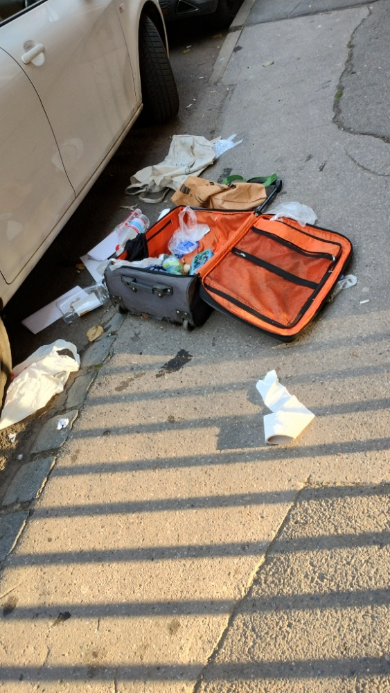 vyhozený kufr s odpadky