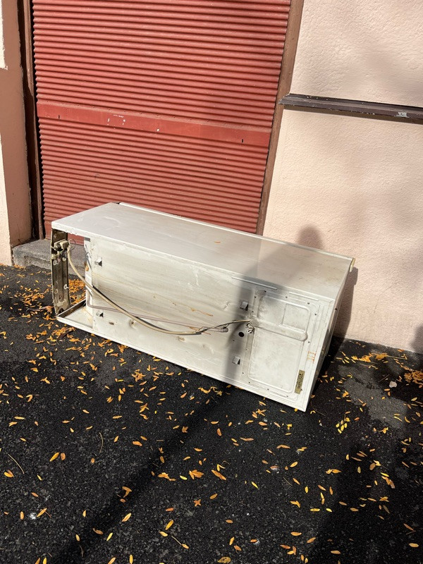 Někdo nechal na ulici starý spotřebič (lednička?)