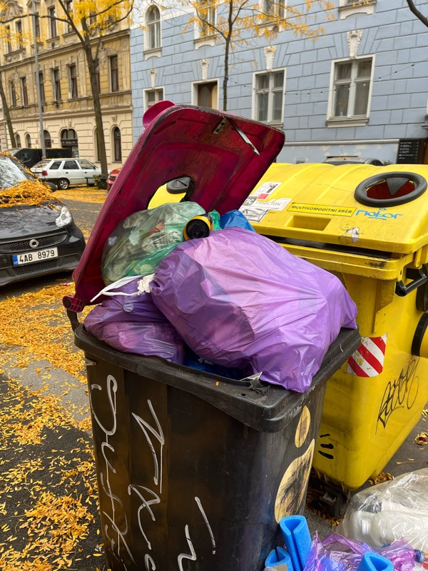 Popelnice na použitý olej je plná odpadu, který tam nepatří.