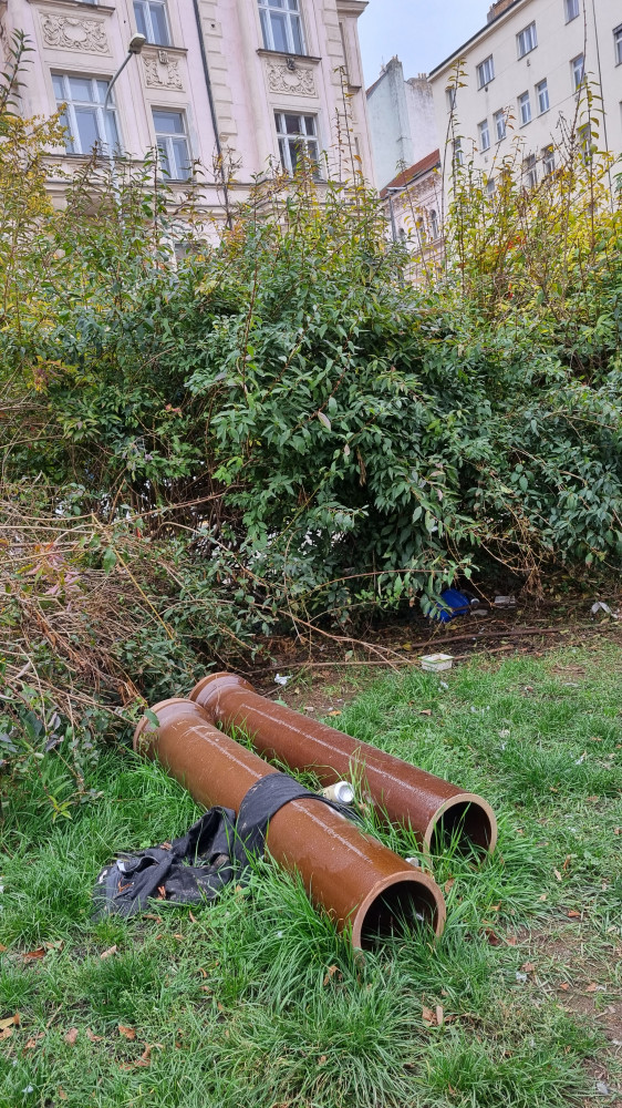 Dobrý den, děkujme za Váš podnět. Nepořádek poklizen Čistou Trojkou. Trubky patří ke stavbě a budou odvezeny. Marek Čistá Trojka