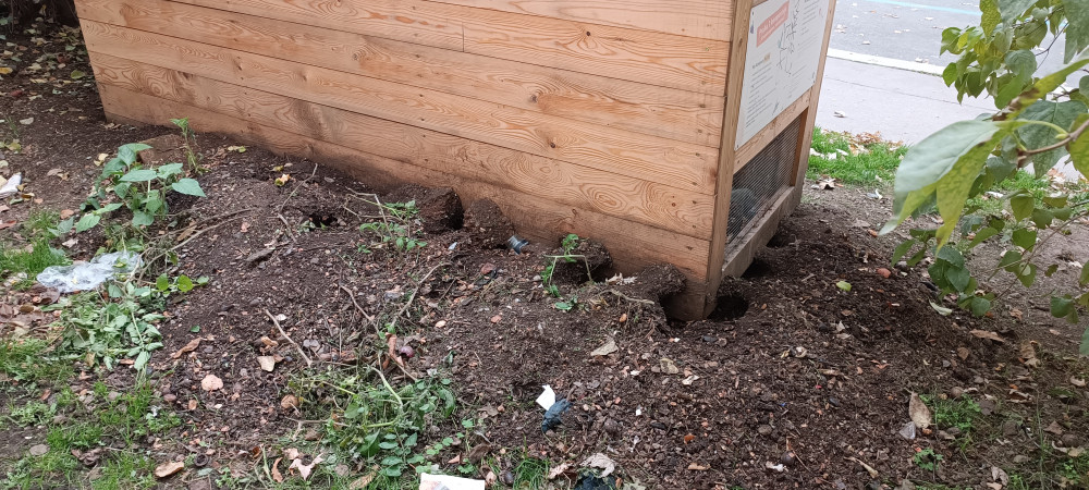 Pod komposterem vedla kontejnerů na tříděný odpad došlo k přemnožení potkanů. Komposter je kompletně podhrabaný viz přiložené foto. Jaké navrhujete řešení?