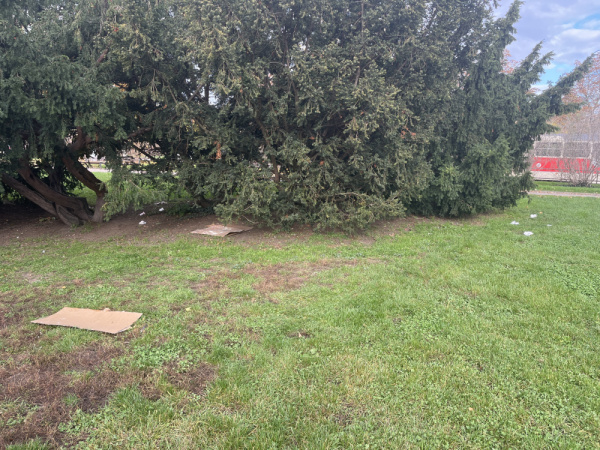 Na náměstí Jiřího z Lobkovic v parku pod stromy a okolo stromu je spousta nepořádku