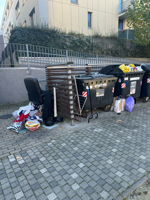 Dobrý den, za pořádek okolo popelnice je odpovědný vlastník nádoby. V případě popelnic na směsný odpad ( černé nádoby ) to bývá zpravidla majitel přilehlého domu, jehož adresa je vylepena na popelnici. -V podobných případech se obracejte přímo na něho, případně na hygienickou stanici, nebo na policii... Děkujeme za pochopení Marek Čistá Trojka