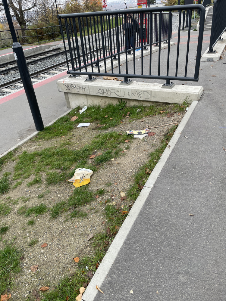 Nepořádek kolem celé zastávky i schodů z Krejcárku k bazénu