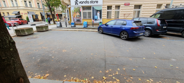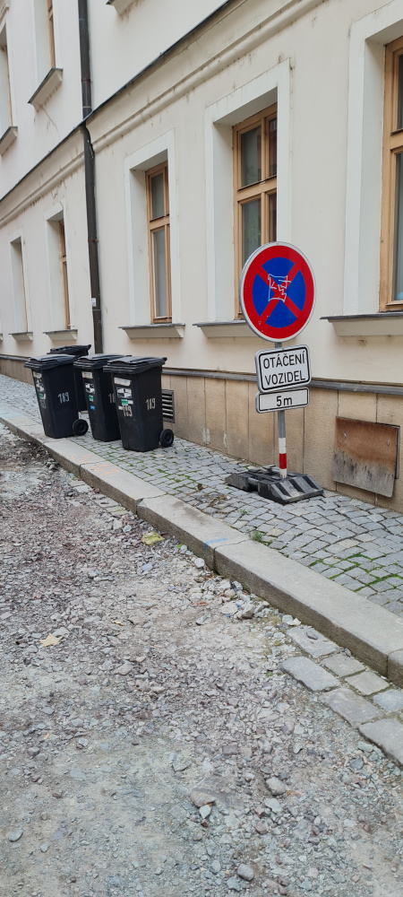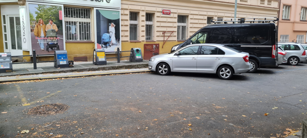 Ve slepé uličce na Perunově ulici často parkují auta na nepovolených parkovacích místech v blízkosti popelnic. To znemožňuje otáčení ostatních aut.