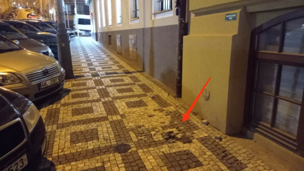 V ulici Krásova se u lampy 300 690 nachází rozpadlá dlažba chodníku.