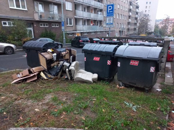 nabytek kolem popelnic