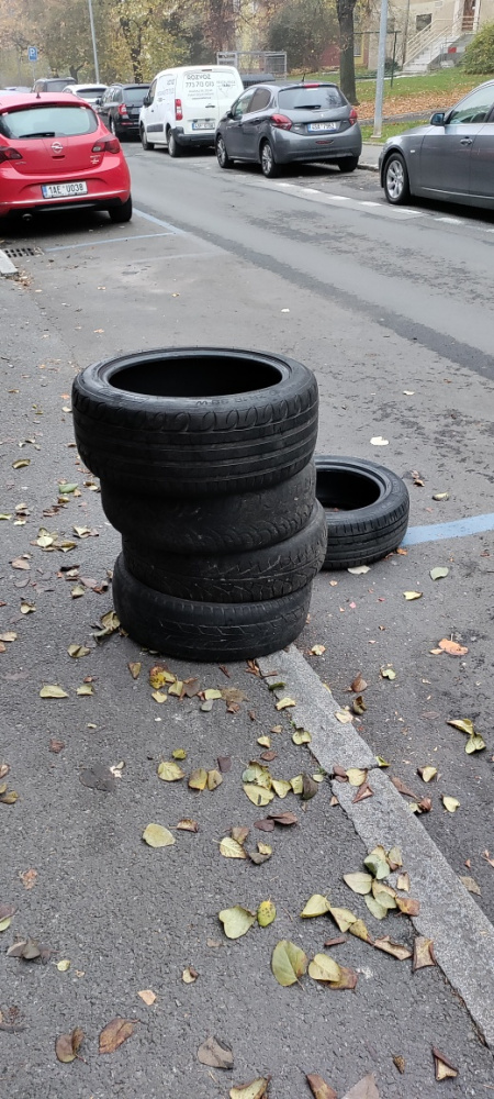 ulice Luční - někdo zde odložil gumy... už jsou tu několik dnů