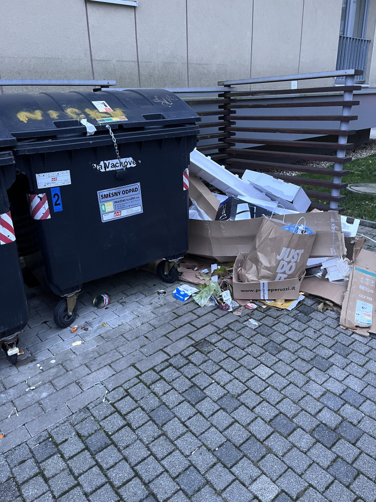 Dobrý den, u popelnic na rohu ulic Na Vackově a Olgy Havlové je již několikátým dnem nepořádek a odpadky se válí kolem sběrných nádob.