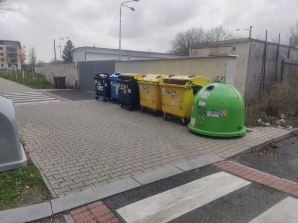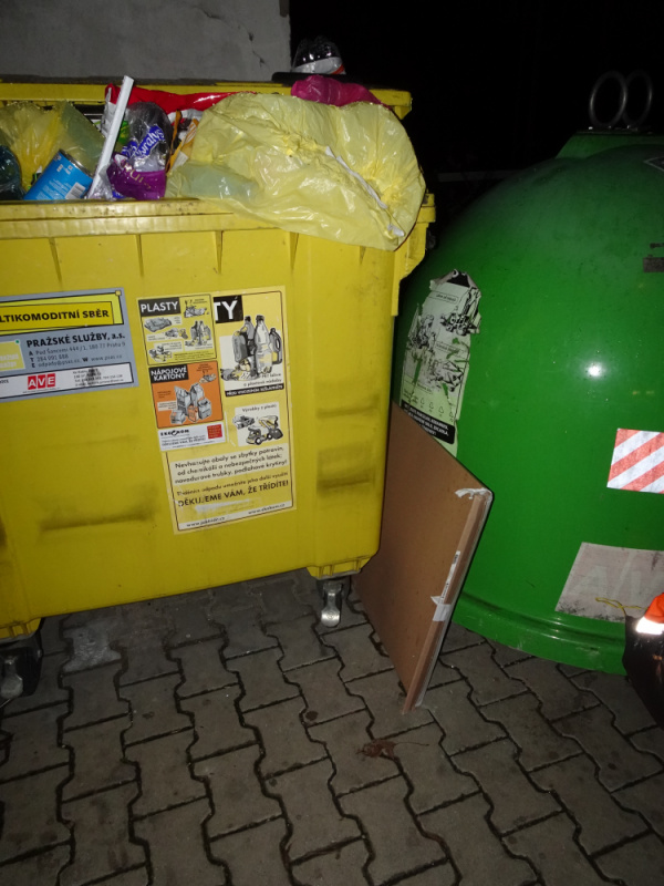 Dobry den, v Ulici Zverinova je vedle kontejneru na sklo vyhozena drevotriskova hneda deska obalena hadrem. Prosim o uklid.
