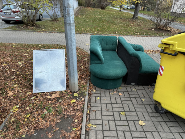 odložený obývák u popelnic
