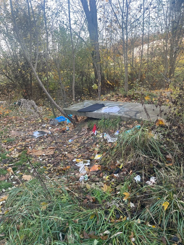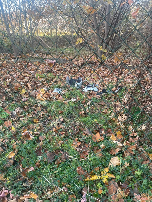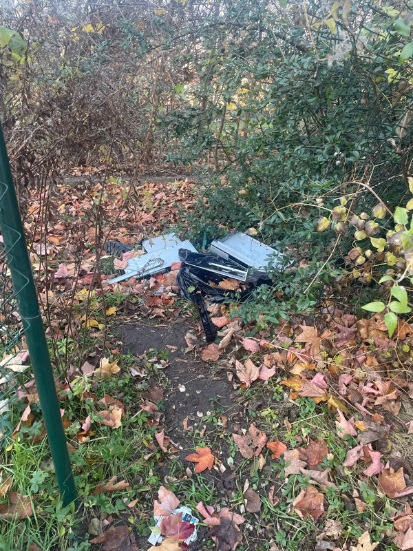Dlouhodobě pohozená rozbitá elektronika a oblečení v parku Kapslovna, již hlášeno 14.11.