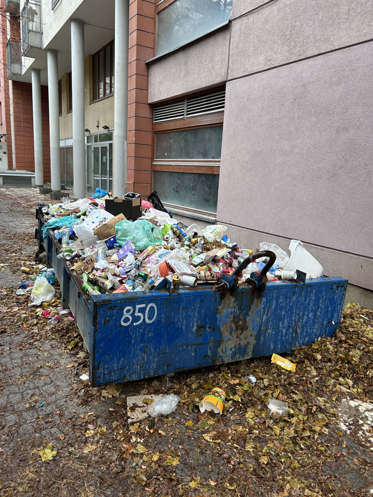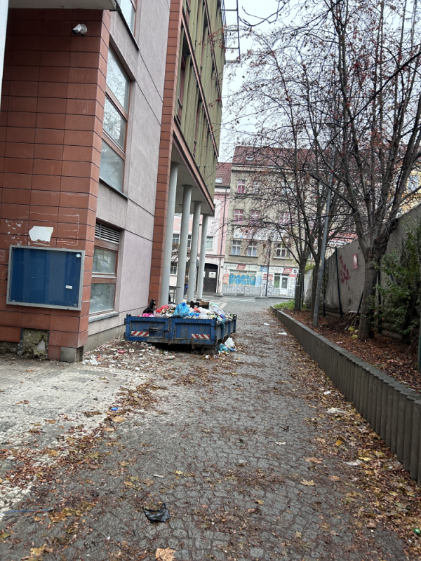 V ulici již víc jak měsíc překáží tento kontejner se stavebním odpadem a teď už i s běžným.
