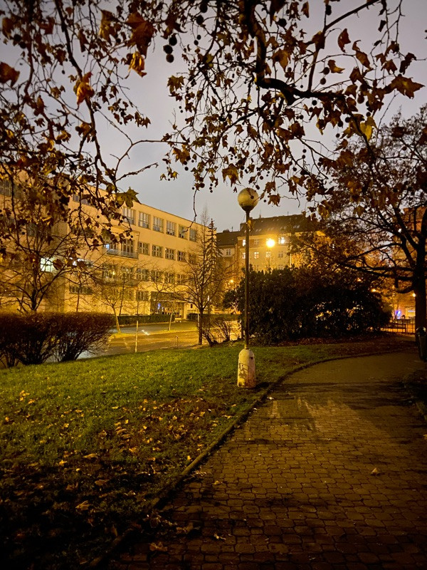 Zas nesvítí tato lampa a ani ta na druhé straně parku…