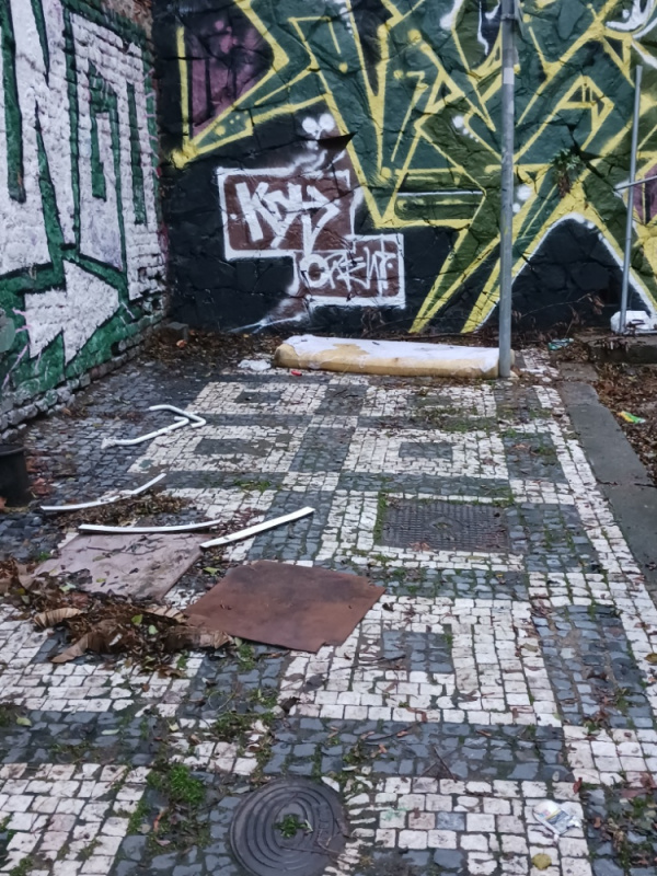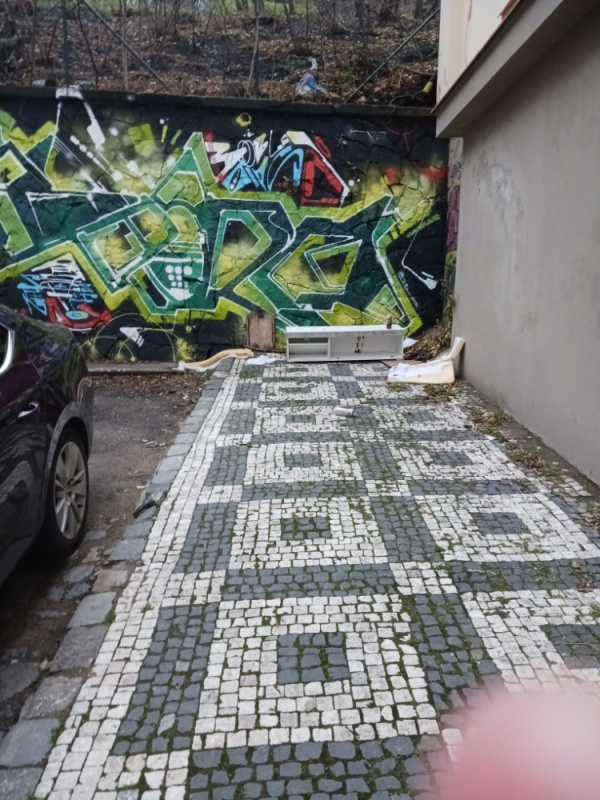 v zaslepené části Jeronýmovy ulice se povalují staré matrace a skříně