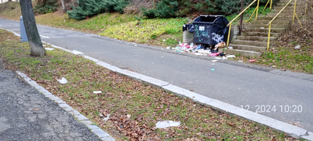 Dobrý den, za pořádek okolo popelnice je odpovědný vlastník nádoby. V případě popelnic na směsný odpad ( černé nádoby ) to bývá zpravidla majitel přilehlého domu, jehož adresa je vylepena na popelnici. -V podobných případech se obracejte přímo na něho, případně na hygienickou stanici, nebo na policii... Děkujeme za pochopení Marek Čistá Trojka
