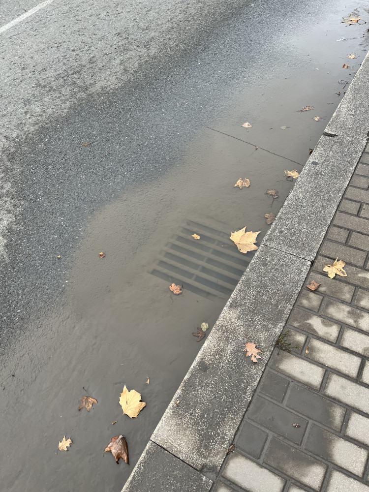 Kanál je úplně ucpaný, voda neodtéká a při dešti se zde tvoří obrovská louže.