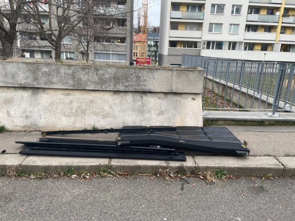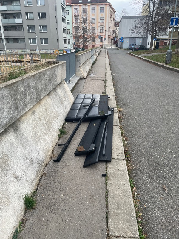 Cast postele lezi na chodniku u detskeho hriste