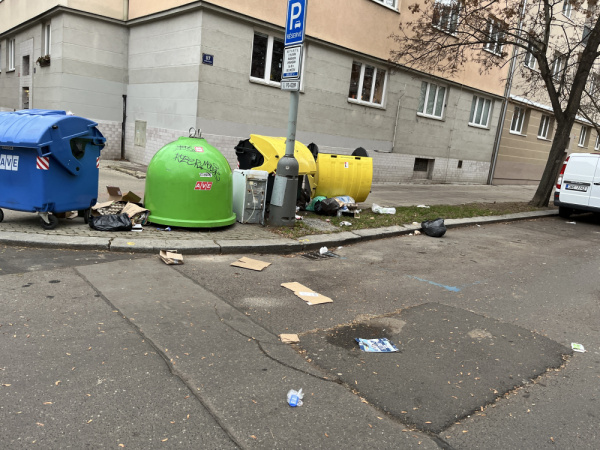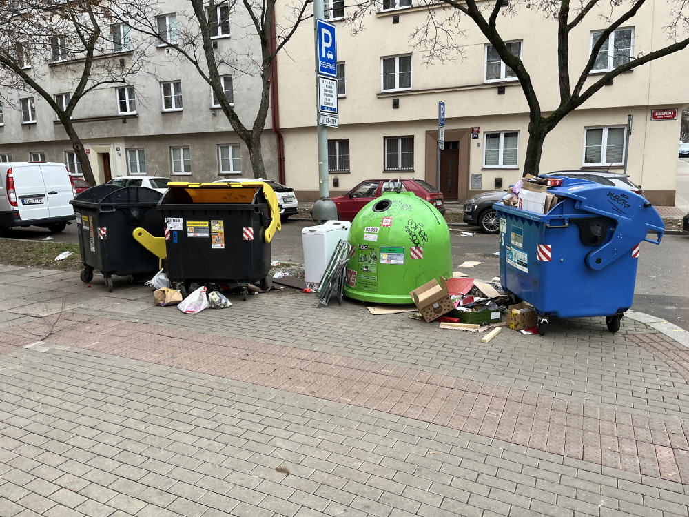 Nevyvezené popelnice a následný nepořádek v celé ulici