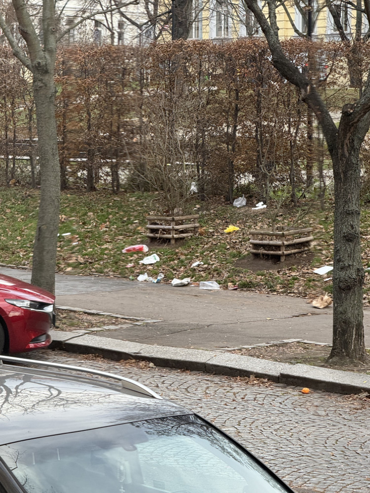 Okolí kontejnerů na třídění odpad, podzemní nádoby jsou úplně plné, nepořádek odložen okolo. Velice znečištěné okolí