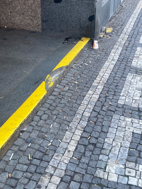 Nepořádek u vstupu do metra z Jičínské včetně rozbité podlahy.