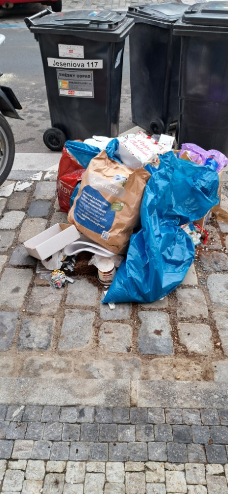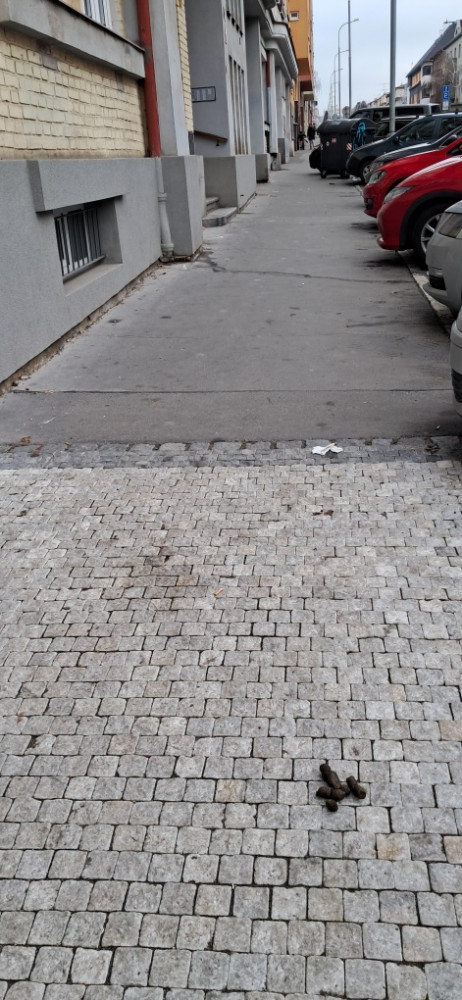 jeseniova od Ambrožovy samé exkrementy a pomocné fasády a chodník, prostě jedno velké psi wc, velmi prosím o úklid a děkuji