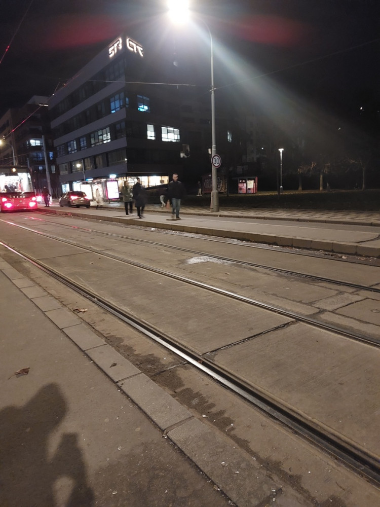 Střepy na zastávce Viktoria Žižkov ve směru do centra