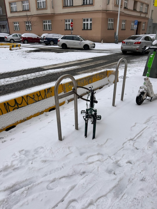 Kolo je zde přivázané už několik týdnů a postupně se z něj ztráceli součástky. Nepředpokládám že si pro něj někdo přijde.