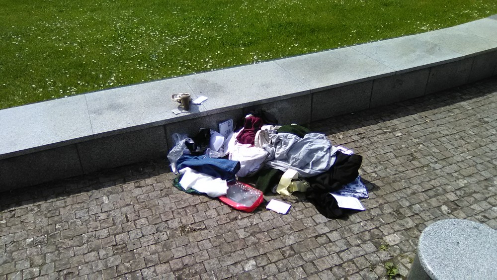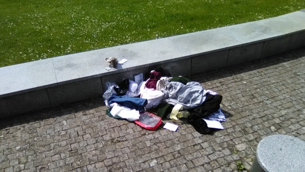 Nepořádek u vstupu do metra.