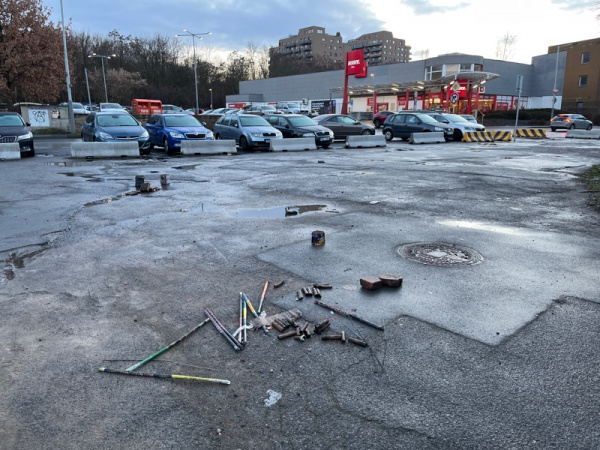 Použitá pyrotechnika na parkovišti