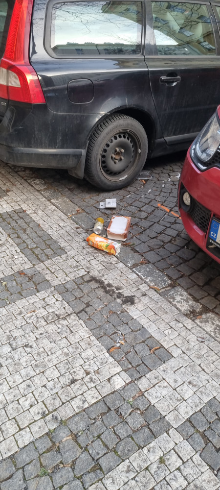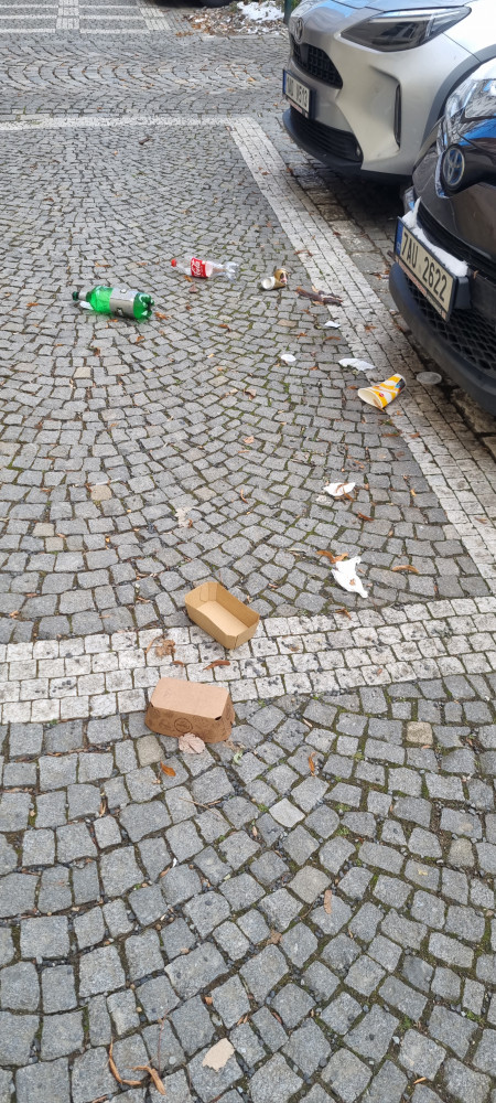 Rozsypane odpadky po ulici