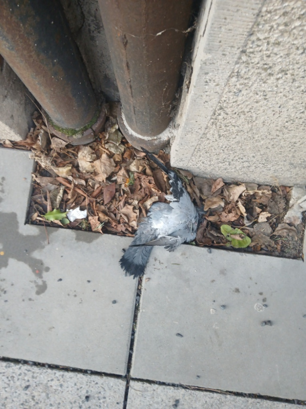 Značně okoralá holubí mršina, hlásila jsem již 28.11.!!! Žádám o informaci, zda je možné ji uklidit, kdy se tak stane a kdo úklid povede ( prosím o celý nazev, ne pouze zkratku). problém byl hlášen opakovaně nejen ode mne