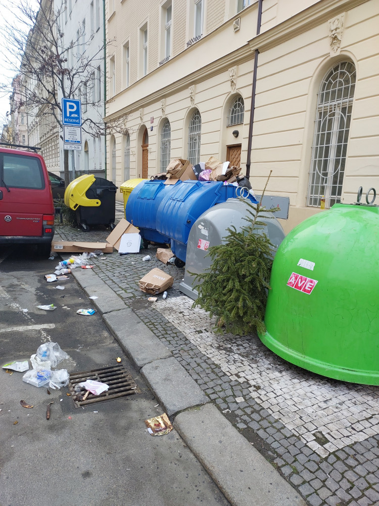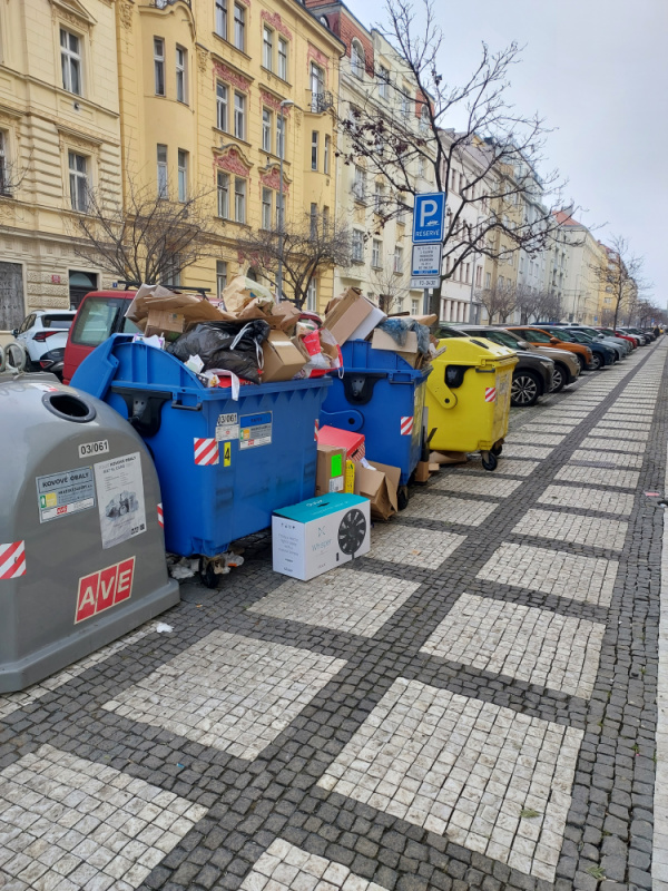 Prosím o vyvezeni kontejnerů na papír a plast u bývalé pošty na nám.Jiriho z Poděbrad. Odpad se válí po ulici a preteka již druhý den z kontejnerů.