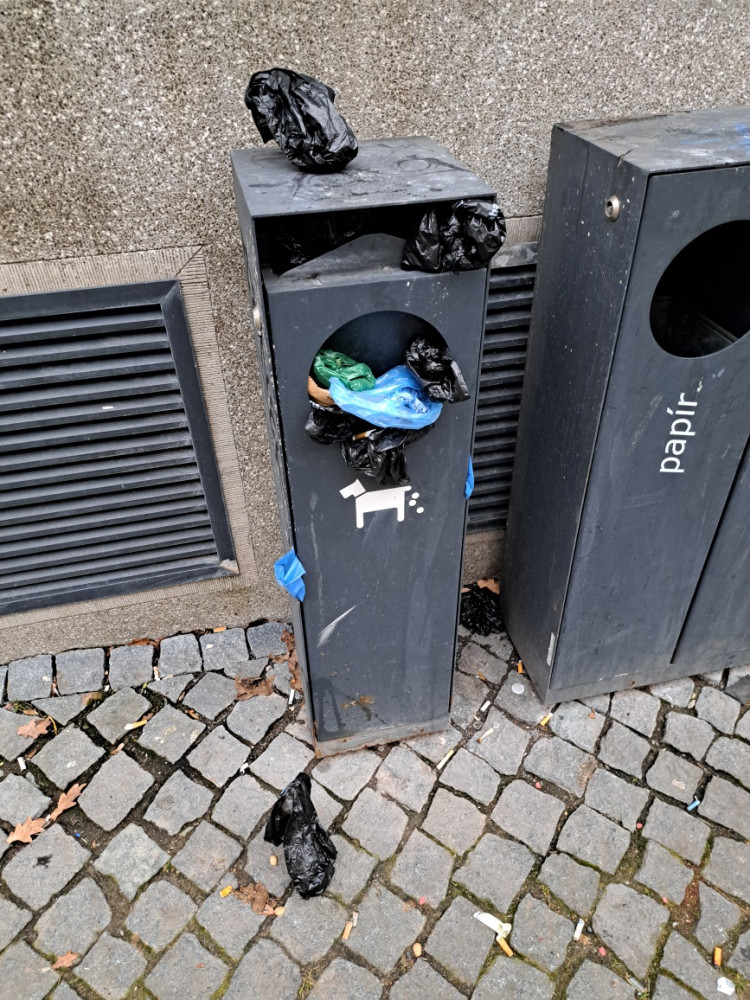 A kdy je "pravidelný svoz"? Koš stále, už týden, preteka pytlíky s výkaly.