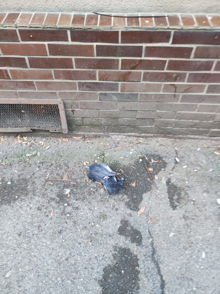 zcepenělý holub vedle lékárny u koně zde leží již několikátý den
