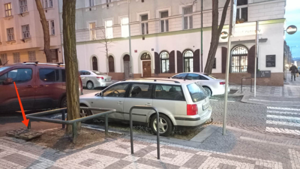 Na křižovatce Hájkova x Hartigova se nachází zapomenutý podstavec po přenosné DZ.