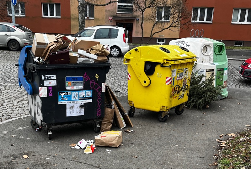 Věčný problém s přeplněnými kontejnery na tomto místě. Je to nehezké, přimlouval bych se za podzemní nádoby, místo tam je. Kontejnery ujíždí, protože nejsou na rovné ploše, víko nedeží v aretované poloze. Přiložené foto je ten "lepší" stav. Člověk přestává mít motivaci odpad třídit, když ani není možnost odpad vhodit do nádoby. Sklo a plech jen OK, multikomodita a papír věčně přetékající kolem, lituji popeláře. Je v plánu nějaké řešení?