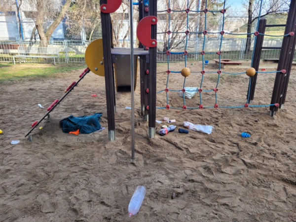 zbytky po bezdomovcích - oblečení, pití, odpadky, léky