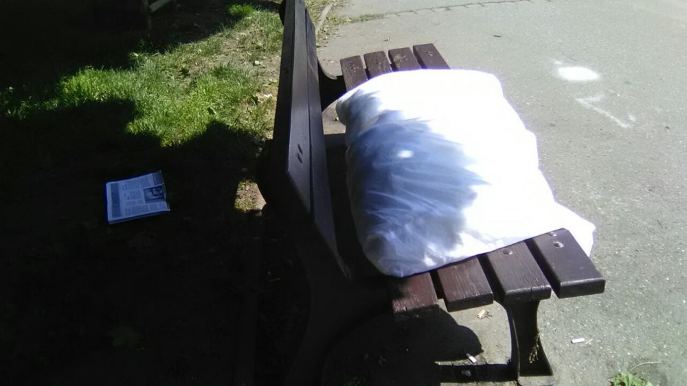Odpad na lavičce.