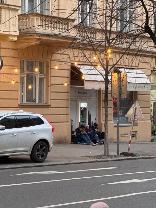 Skupinka lidí bez domova pravidelně na stejném místě
