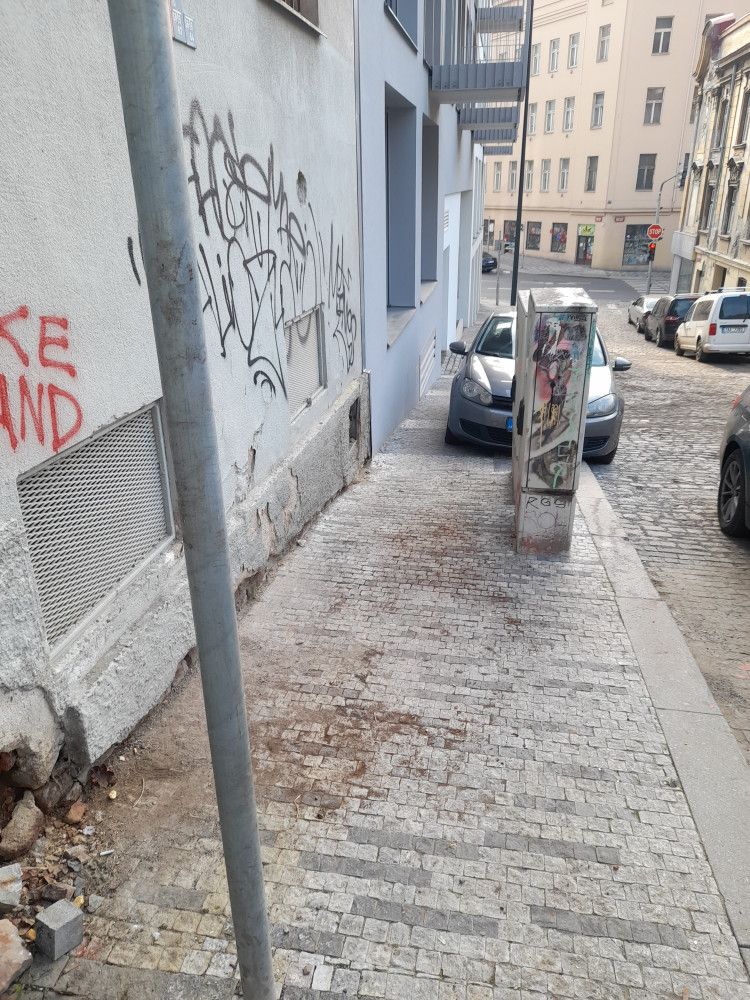 Ulice Pod Vítkově - zřejmě rozsypaná popelnice