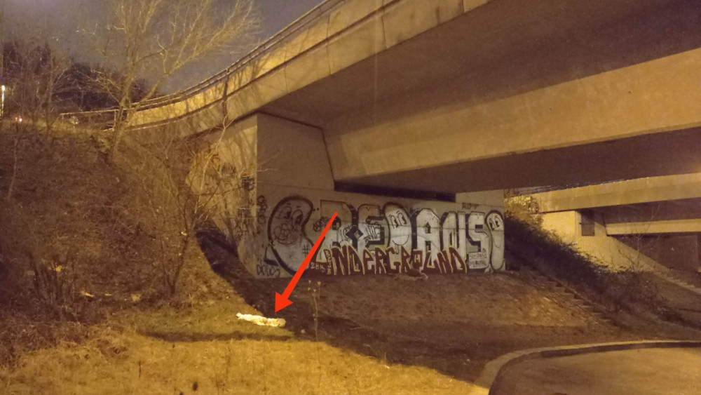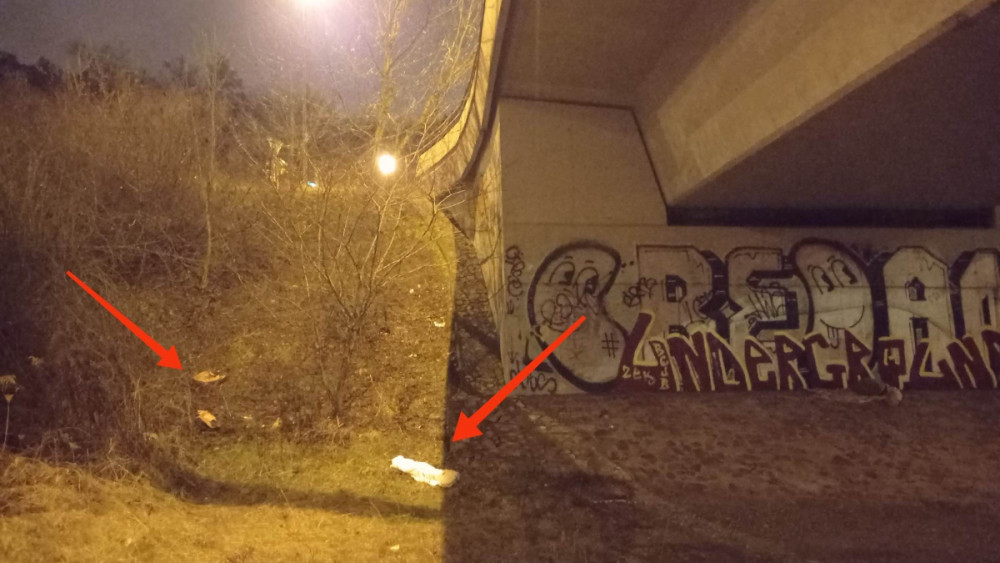 U cyklostezky A257 se u opěry mostu ulice Pod Plynojemem nachází pohozených několik kusů kartonu.