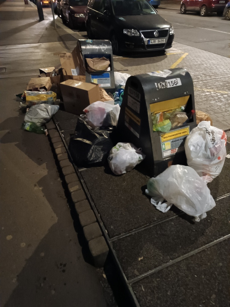 nepořádek u stanoviště tříděného odpadu