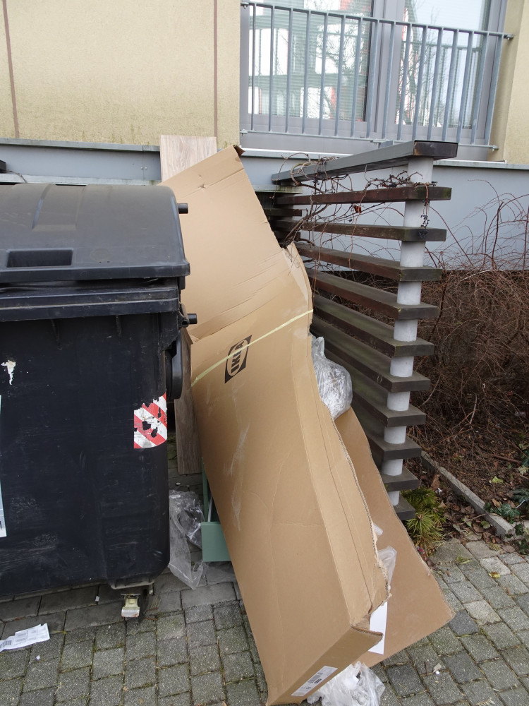 v ulici Olgy Havlove 11 jsou u kontejenru na komunalni odpad vyhozeny casti nabytku.