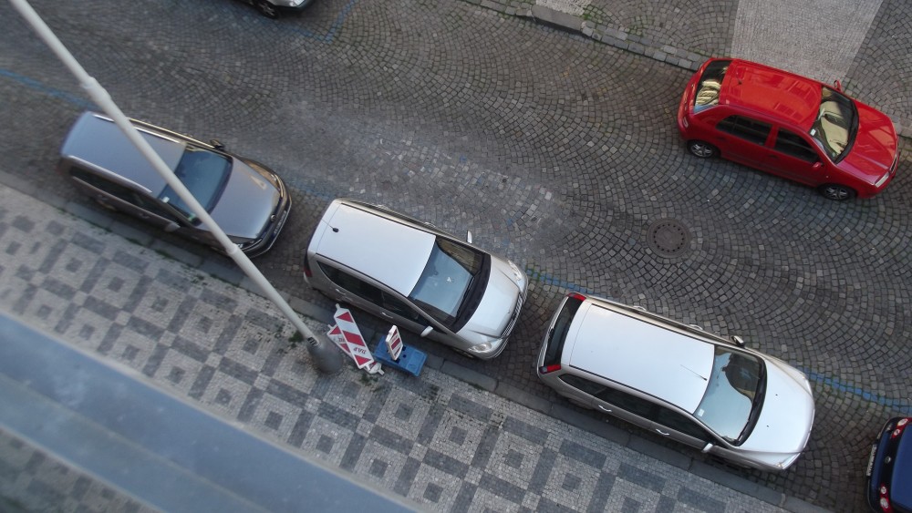 Jsou tu stále značky zátarasů, po opravě silnice.