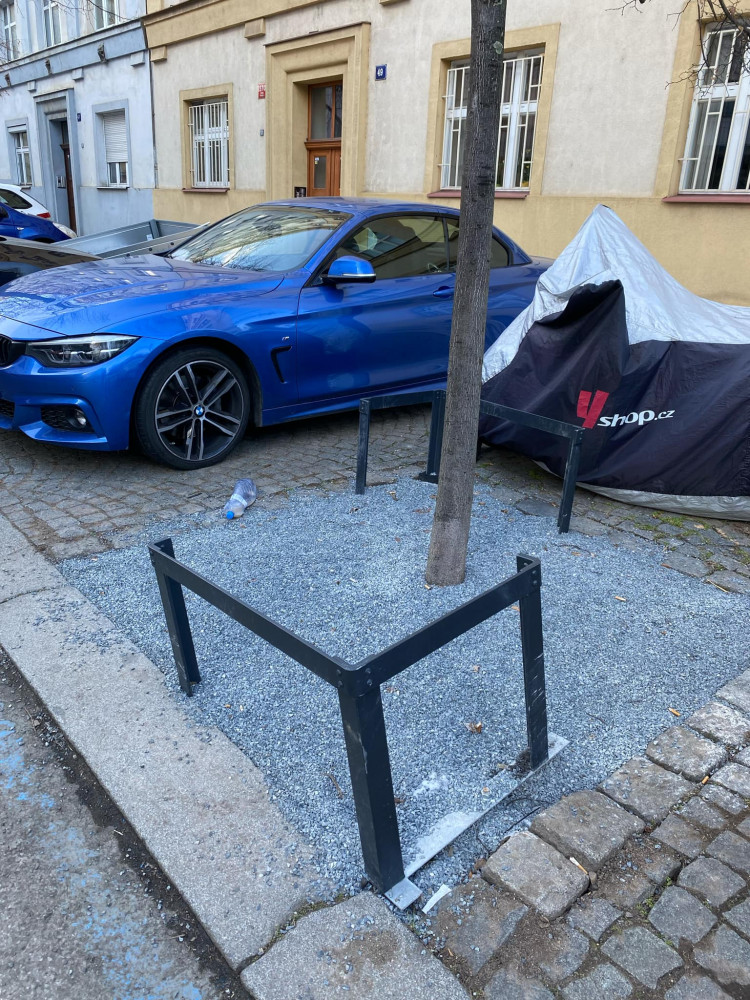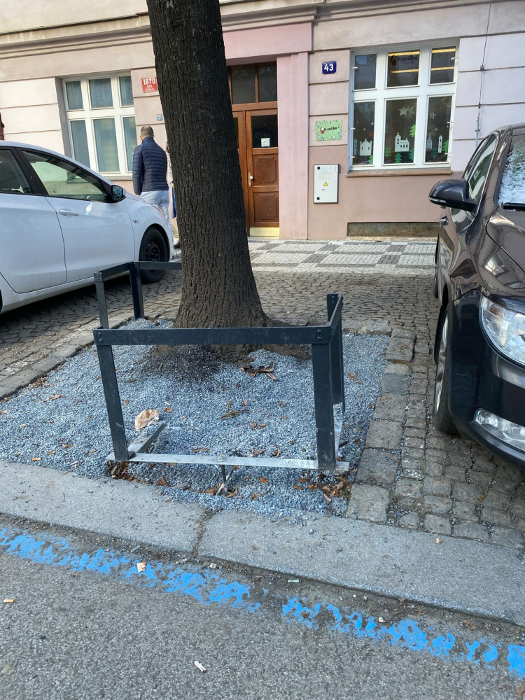 Poničená ochrana kořenové zóny před parkováním - 2 ks (Lucemburská 43 a 49)