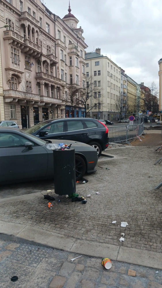 Prosím, mimořádně vysypat koš na Jiřího z Poděbrad na parkovišti za kostelem.